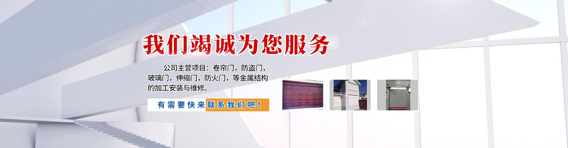公司主營項目:卷簾門,防盜門,玻璃門,伸縮門,防火門,等金屬結構的加工安裝與維修。